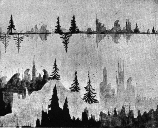 Such deductions or premises are encouraged by the fact that it is difficult to portray definitely the content of all those paintings of Čiurlionis that might be related to abstract painting. We first meet his "abstracts" in the thirteen painting cycle "Creation of the World," painted in 1904-1905. Some of these pictures are similar to abstract paintings. Yet, with what real models could such periods of the creation of the world be illustrated, when in the totally void space the basic elements of the universe were barely emerging?
