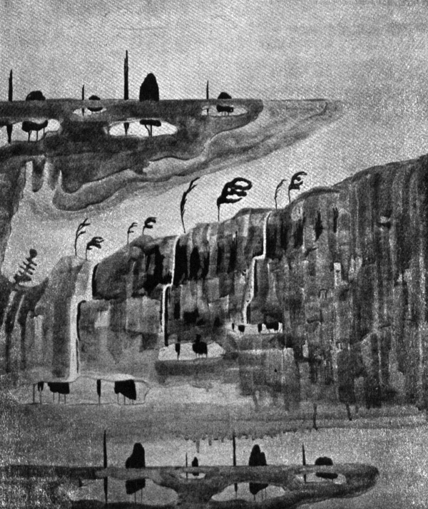When Čiurlionis' health began failing in the summer of 1905 his good friends provided him with a vacation in the Caucasus, where the grand scenic splendor made an unusual impression upon him, and he wasted no time in returning with an urgent passion to paint.