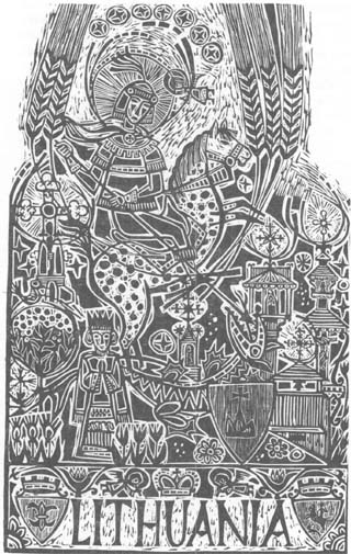 Vytautas Ignas, Stafford Springs, Connecticut, "Southwest Region of Lithuania", 1989-90, linocut, 30"x19"