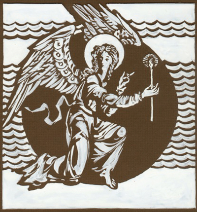 Albinas Elskus, "Cove’s Edge Angel", etching on glass, 1991